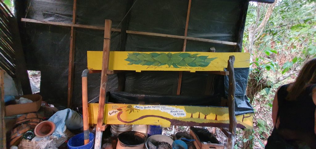 Hier wird alles biologisch gemacht. Um das Gebiet zu schützen und nichts zu vergeuden sind um die Pflanzen aus dem Gebiet umgeben von Bananenpflanzen. Diese speichern das Wasser und filtern es und halten gleichzeitig die weggeschwemmten Pflanzen auf halten, damit sie nicht verloren gehen.