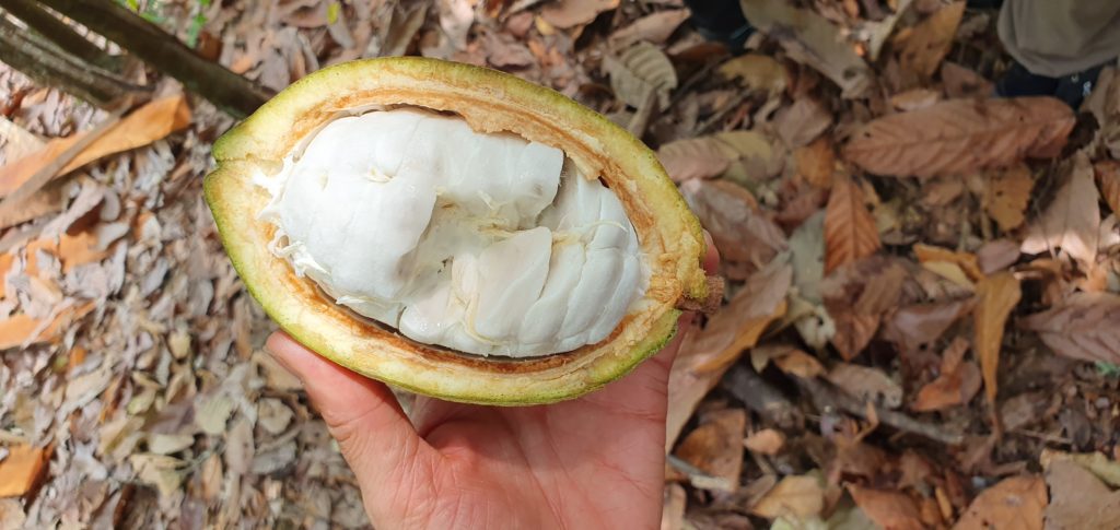 Dazu werden Kakaofrüchte mit dem Fruchtfleisch fermentiert.