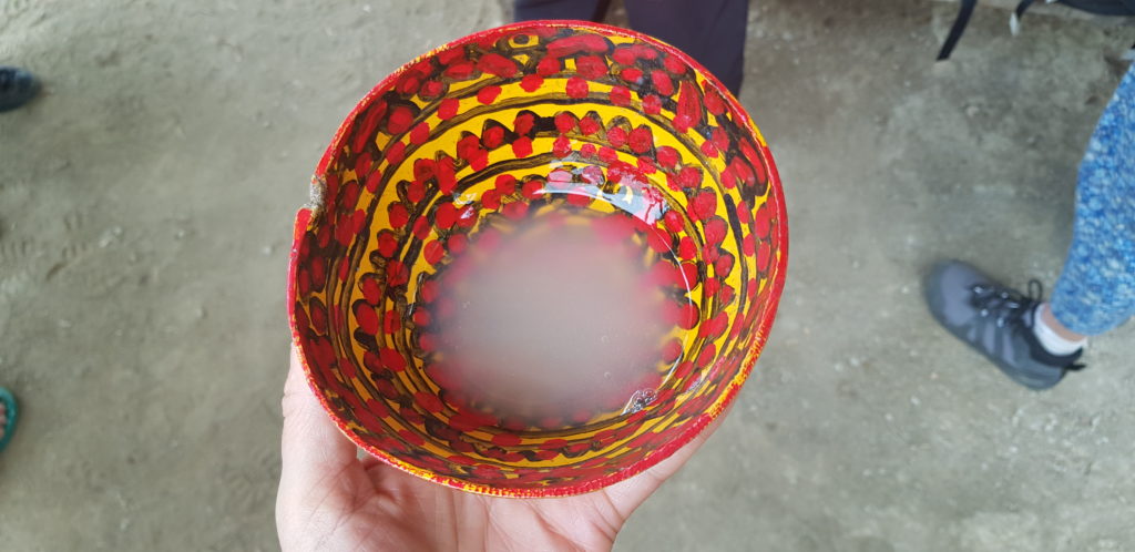 Danach gingen wir weiter und uns wurden 2 verschiedene Kakaosäfte gereicht.