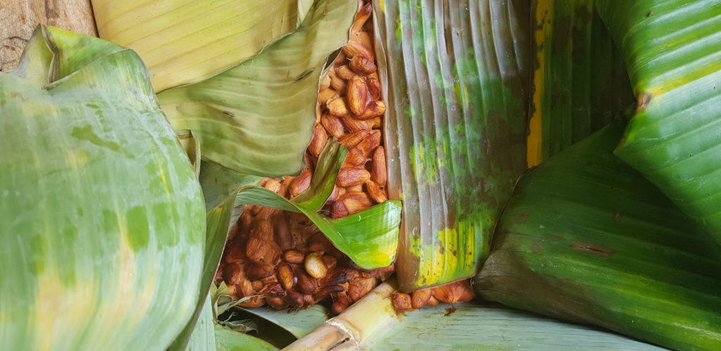Die Fermentation erfolgt in Kisten mit Bananenblättern.