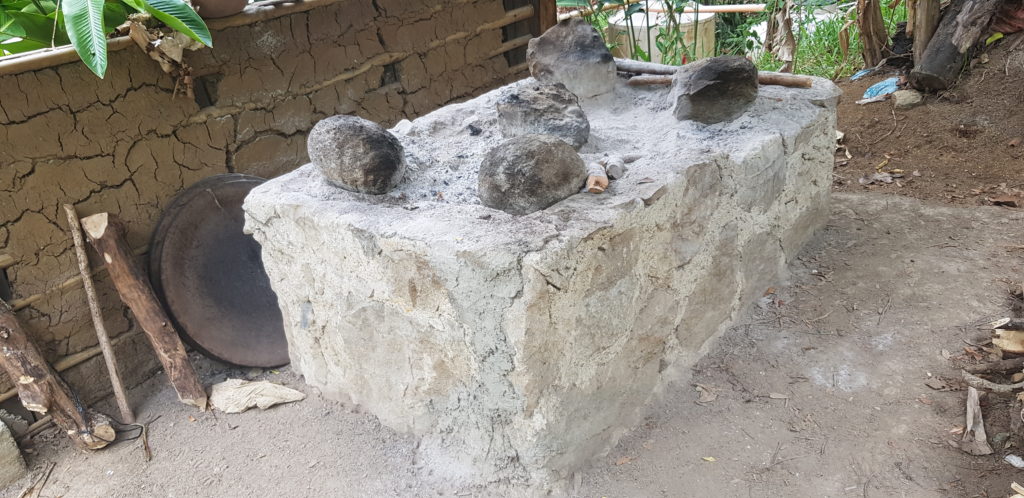 Es wird dazu ein Feuer gemacht und die Pfannen drauf gestellt.