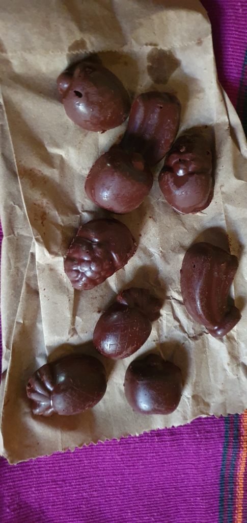 Das durften wir auch machen und mit Nüssen, Kokusraspeln und Gewürzen verfeinern und in Formen gegeben und in den Kühlschrank gestellt.